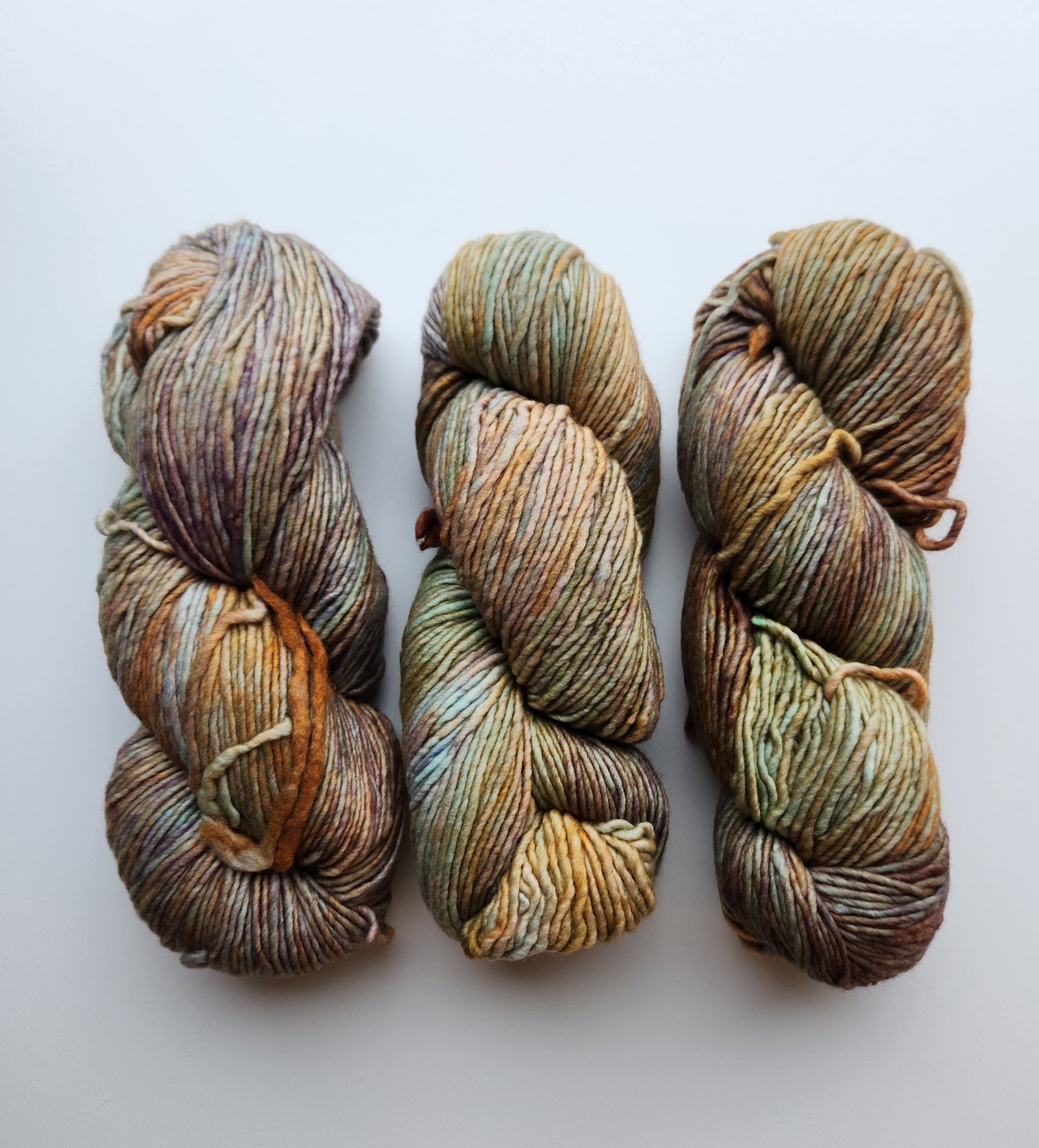 Malabrigo Worsted. 100% superwash merino wool. Single ply. Each skein is 210 yards of hand-dyed perfection, great for any knit or crochet creations, including accessories, garments, baby and kids items, housewares, toys, cables, textured stitches, color-work.