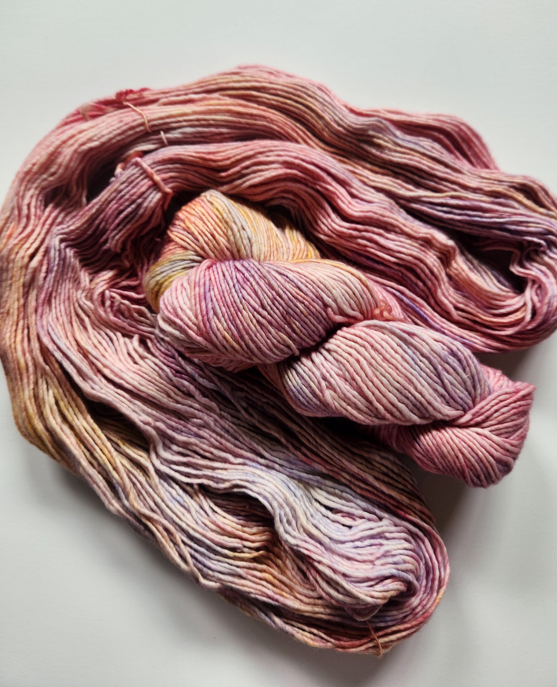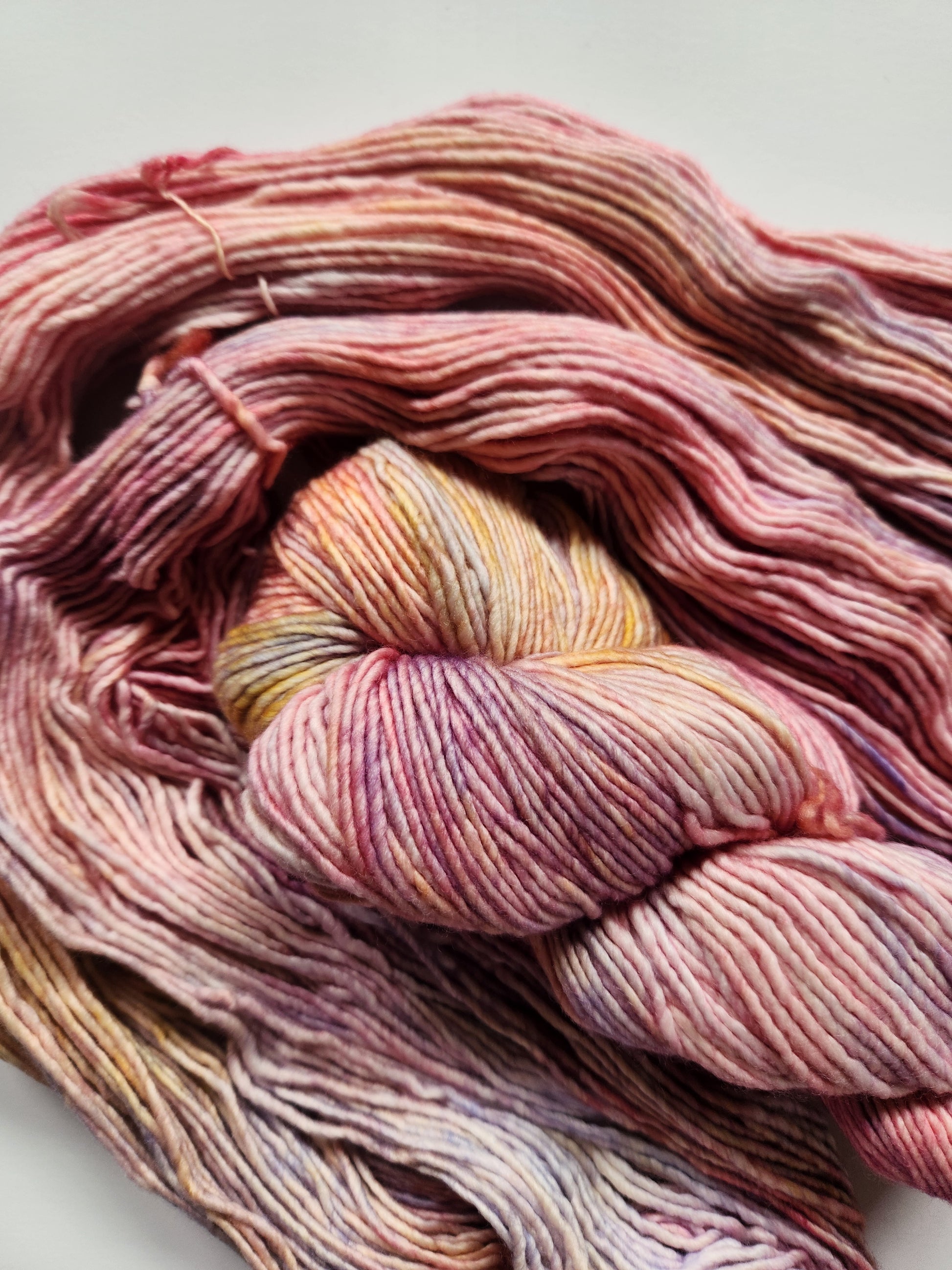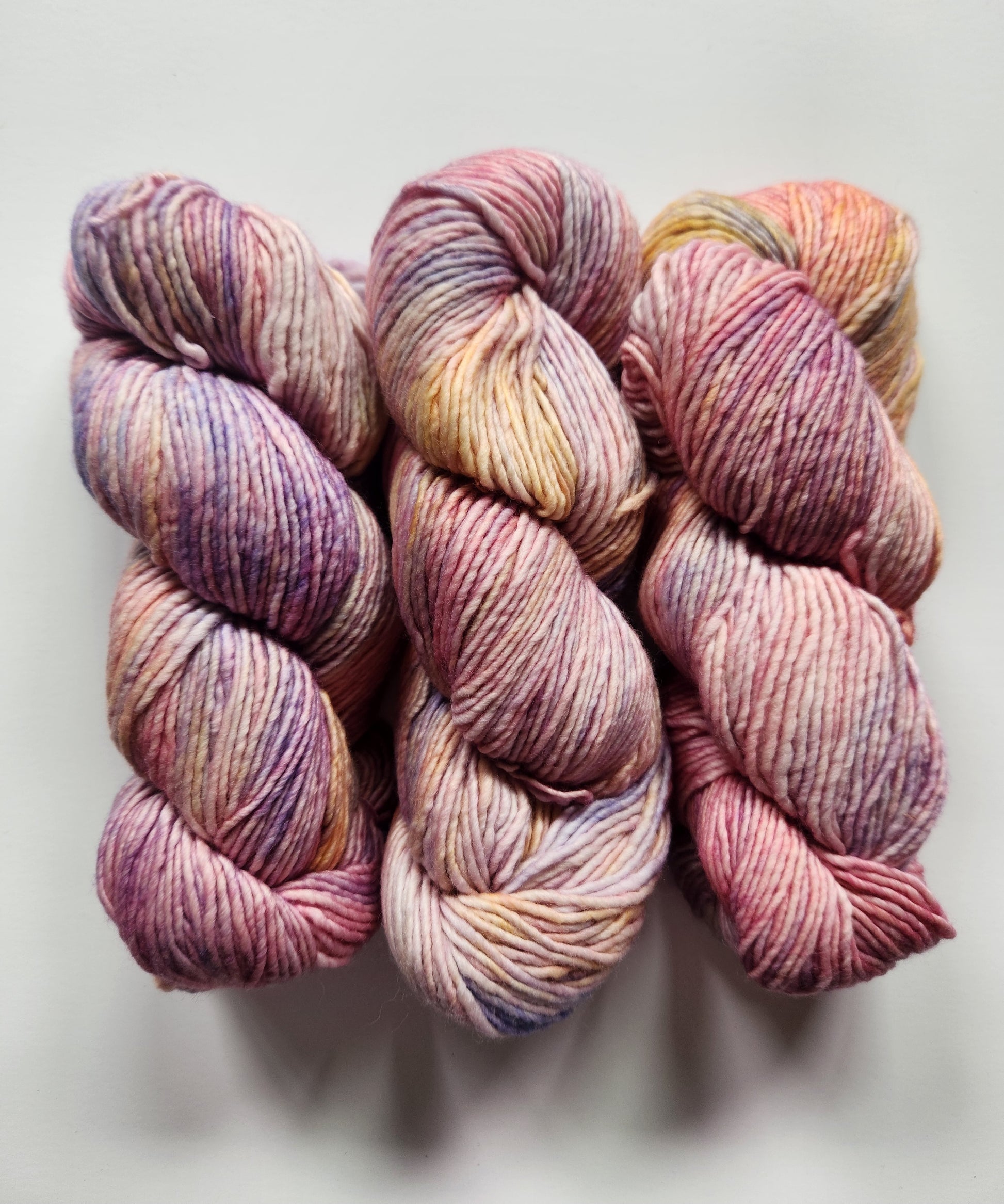 Malabrigo Worsted. 100% superwash merino wool. Single ply. Each skein is 210 yards of hand-dyed perfection, great for any knit or crochet creations, including accessories, garments, baby and kids items, housewares, toys, cables, textured stitches, color-work.