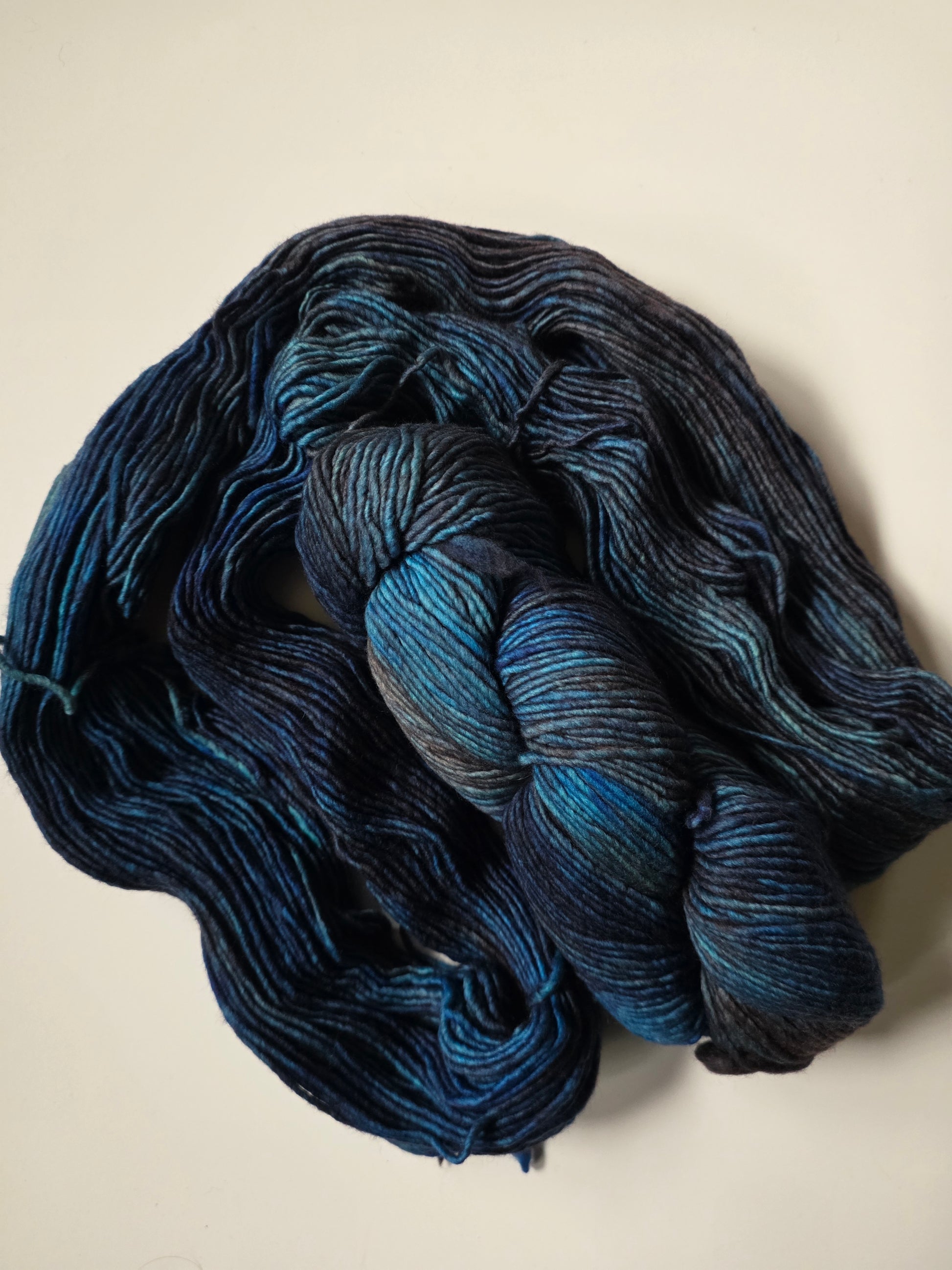 Malabrigo Worsted. 100% superwash merino wool. Single ply. Each skein is 210 yards of hand-dyed perfection, great for any knit or crochet creations, including accessories, garments, baby and kids items, housewares, toys, cables, textured stitches, color-work.