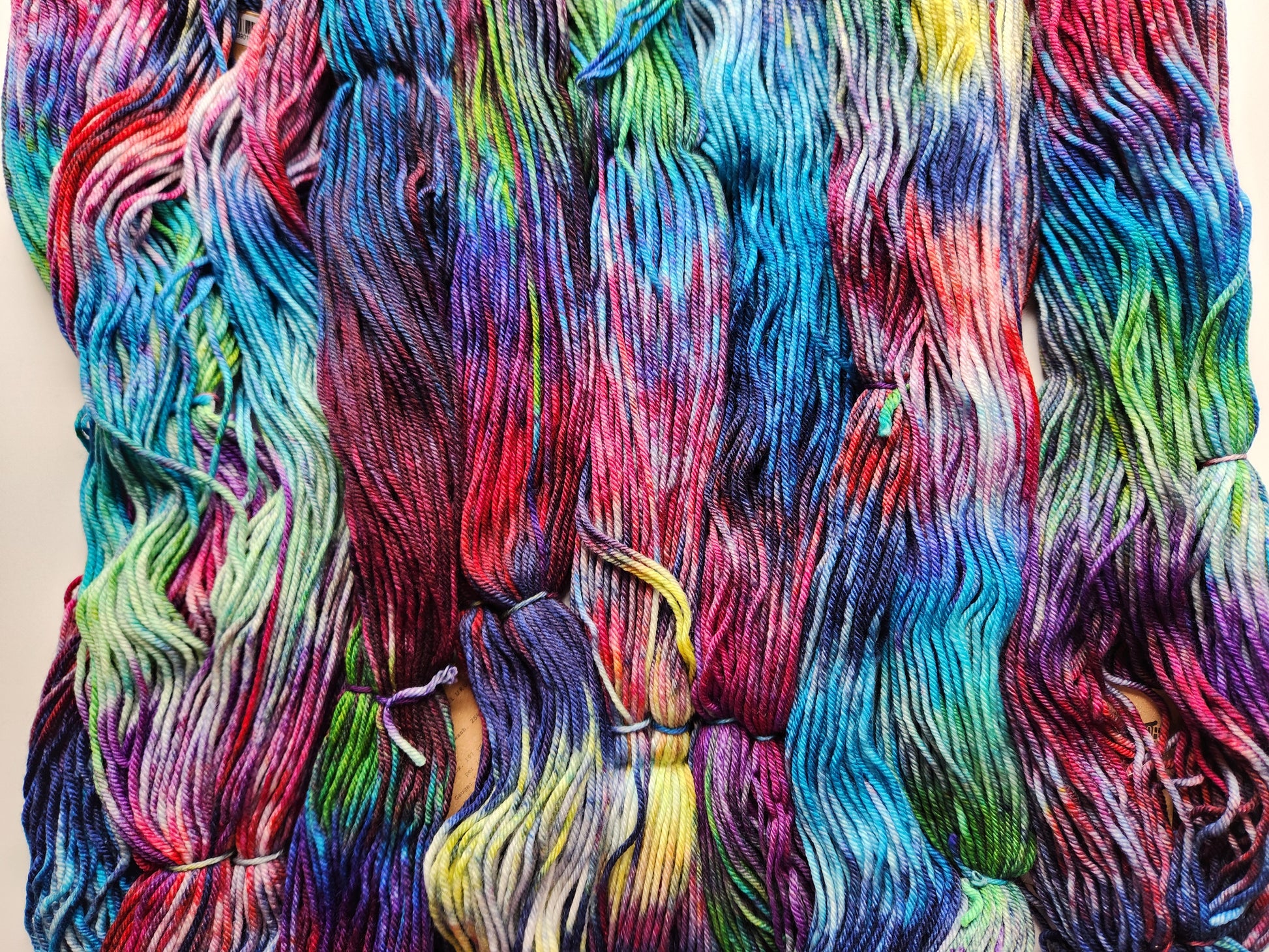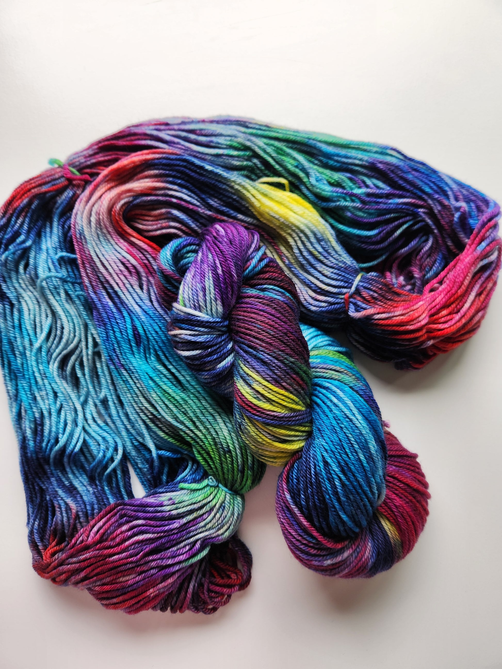 Manos Del Uruguay Alegria Grande is 75% superwash merino and 25% nylon. Worsted weight.