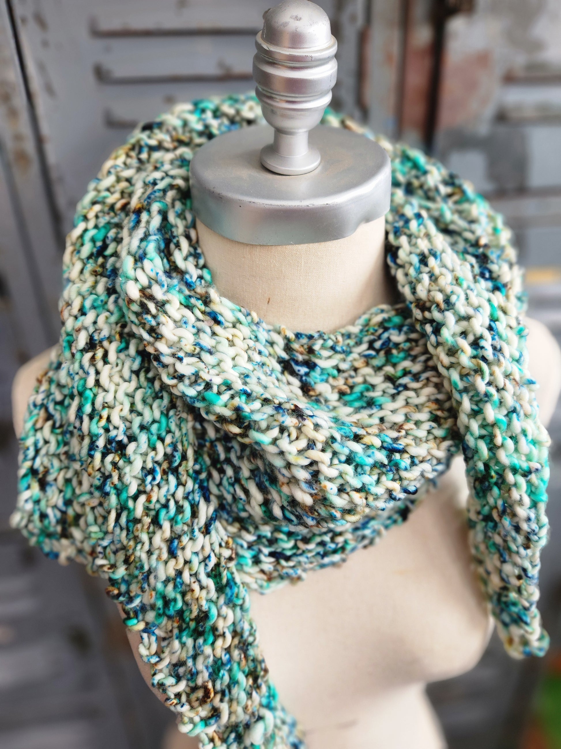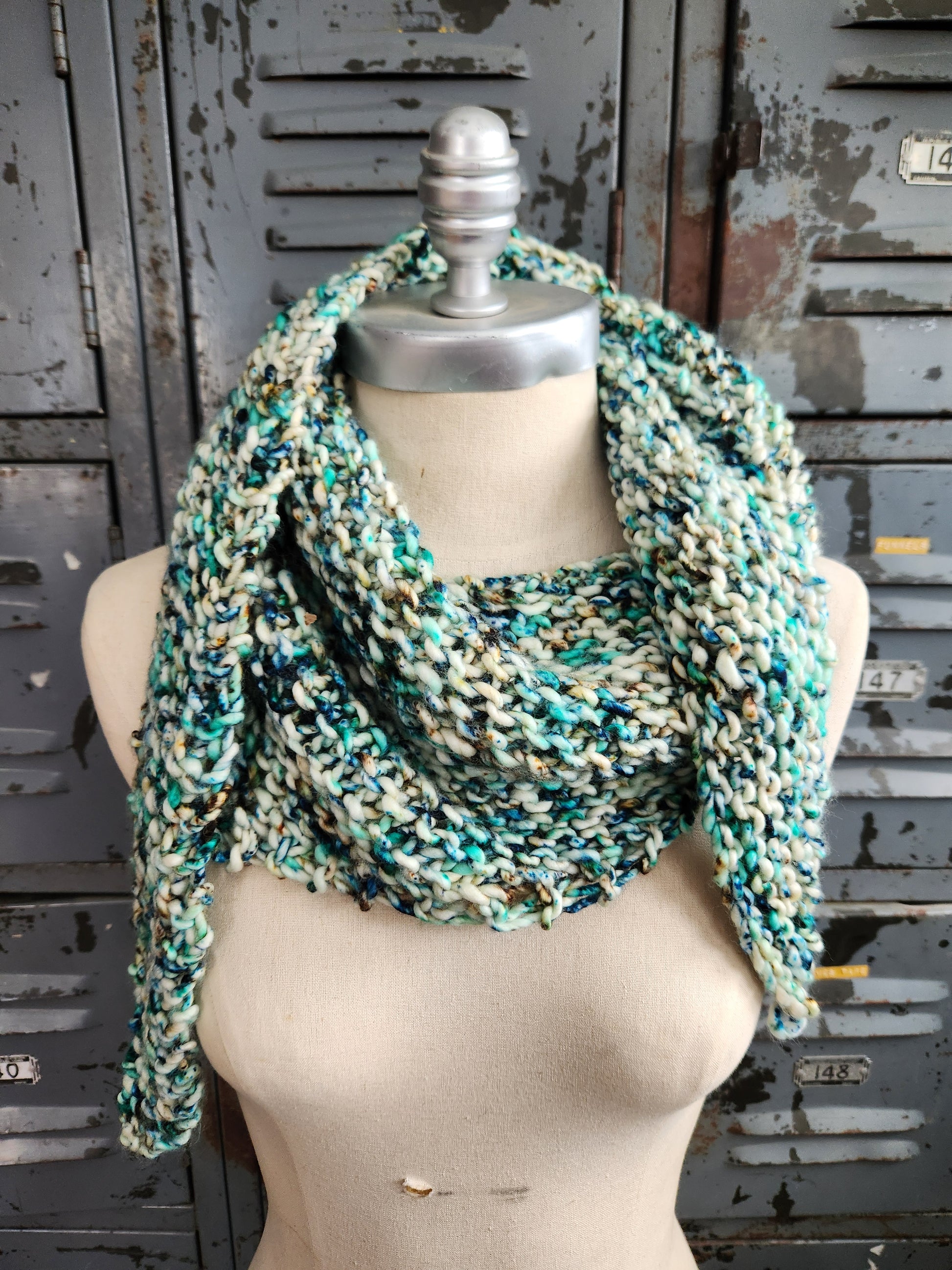 This Sugarloaf Shawl was hand knit by me in my northeast Minnesota home.