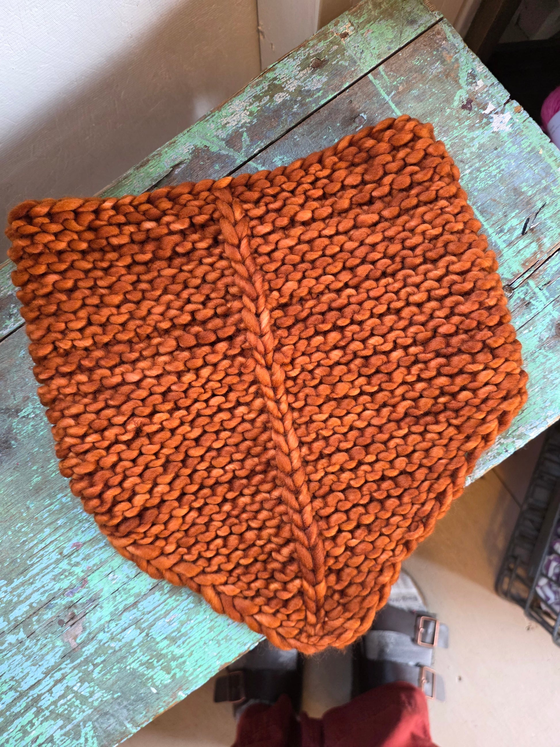This bandana cowl was hand knit by me in my northeast Minnesota home.