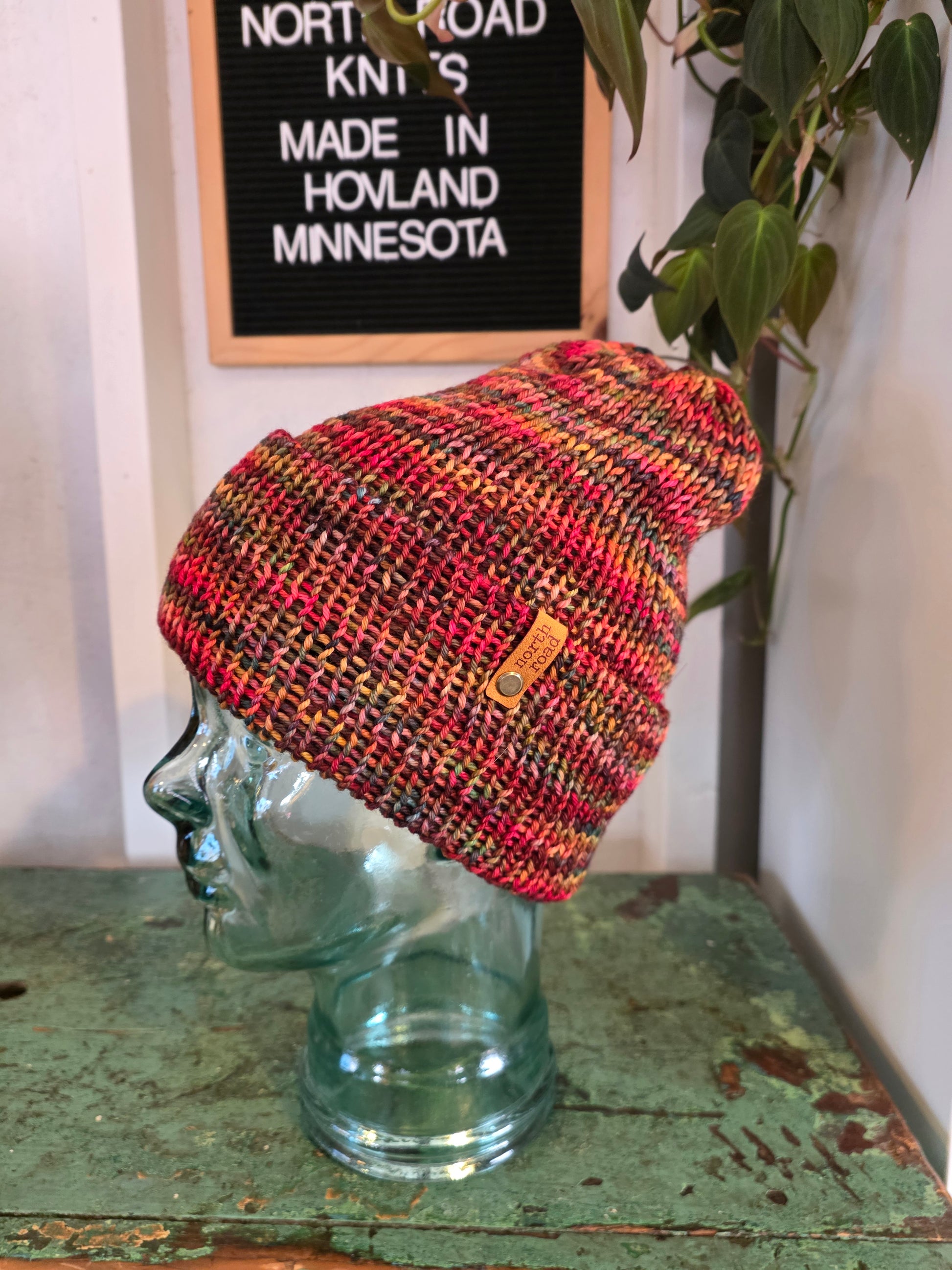 This hat was knit by me in my northeast Minnesota home.