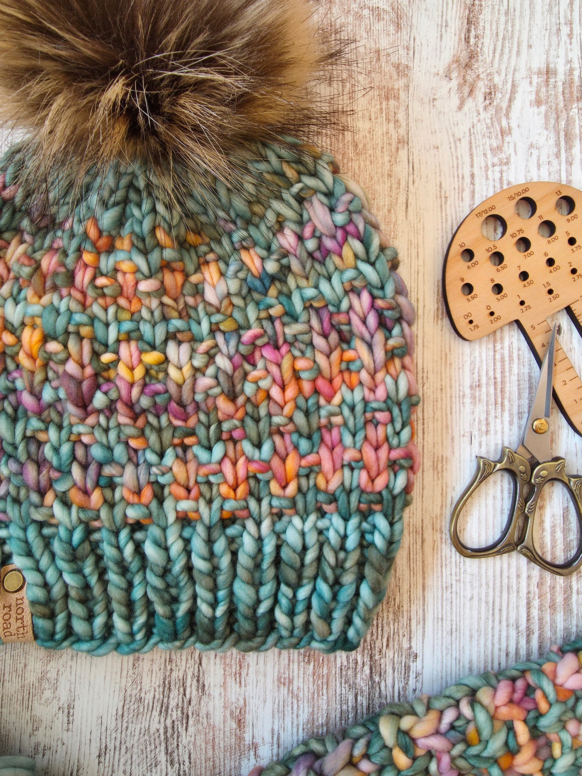 They are made from a beautiful 100% merino wool yarn that is sustainably and ethically sourced, and hand dyed. Fits most average adult heads. Shown here on a glass mannequin head that measures 22" in circumference.
