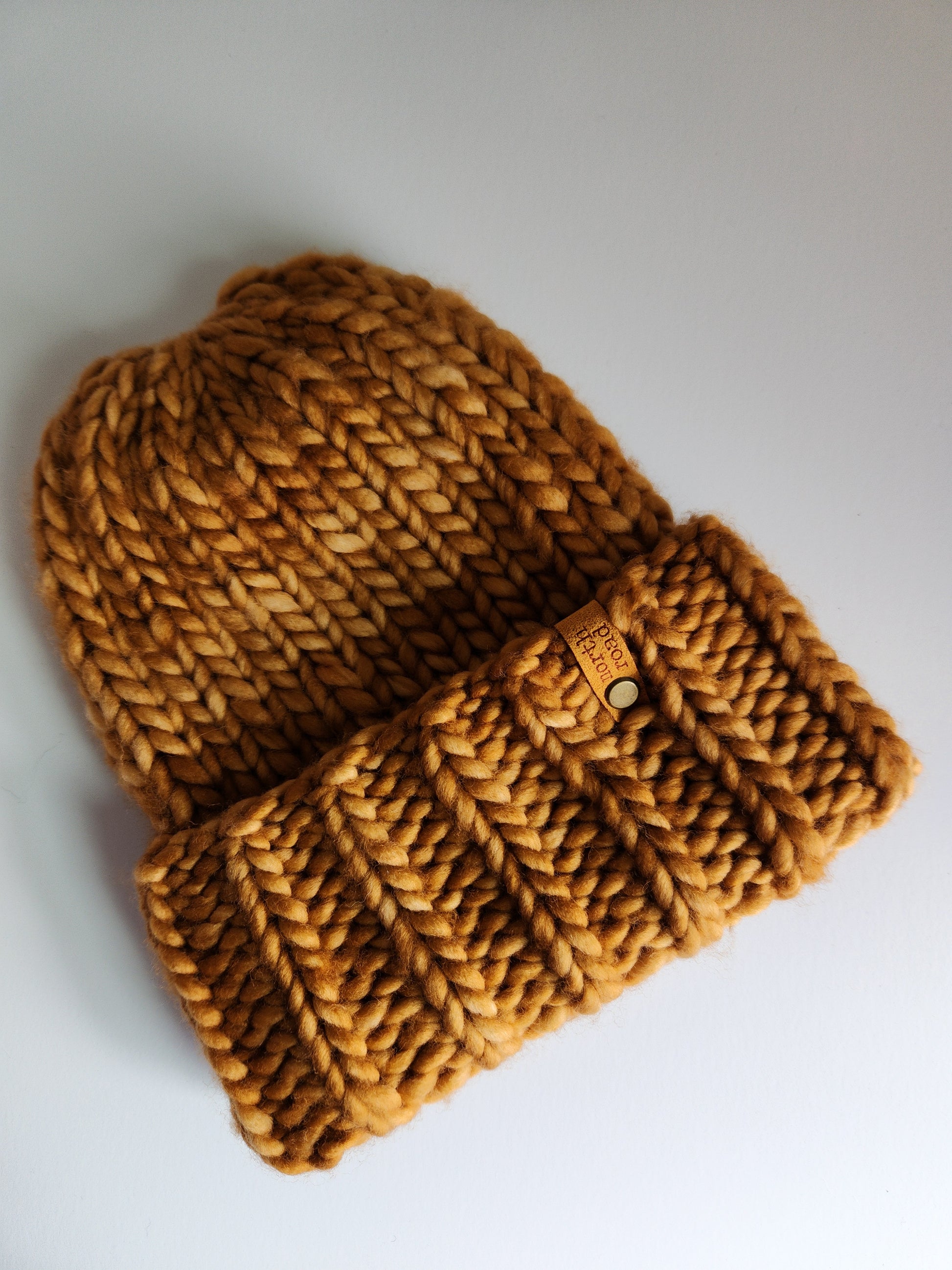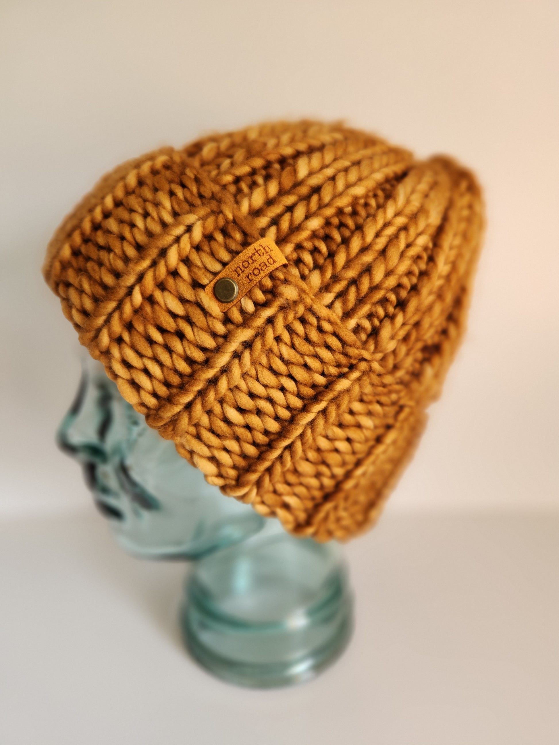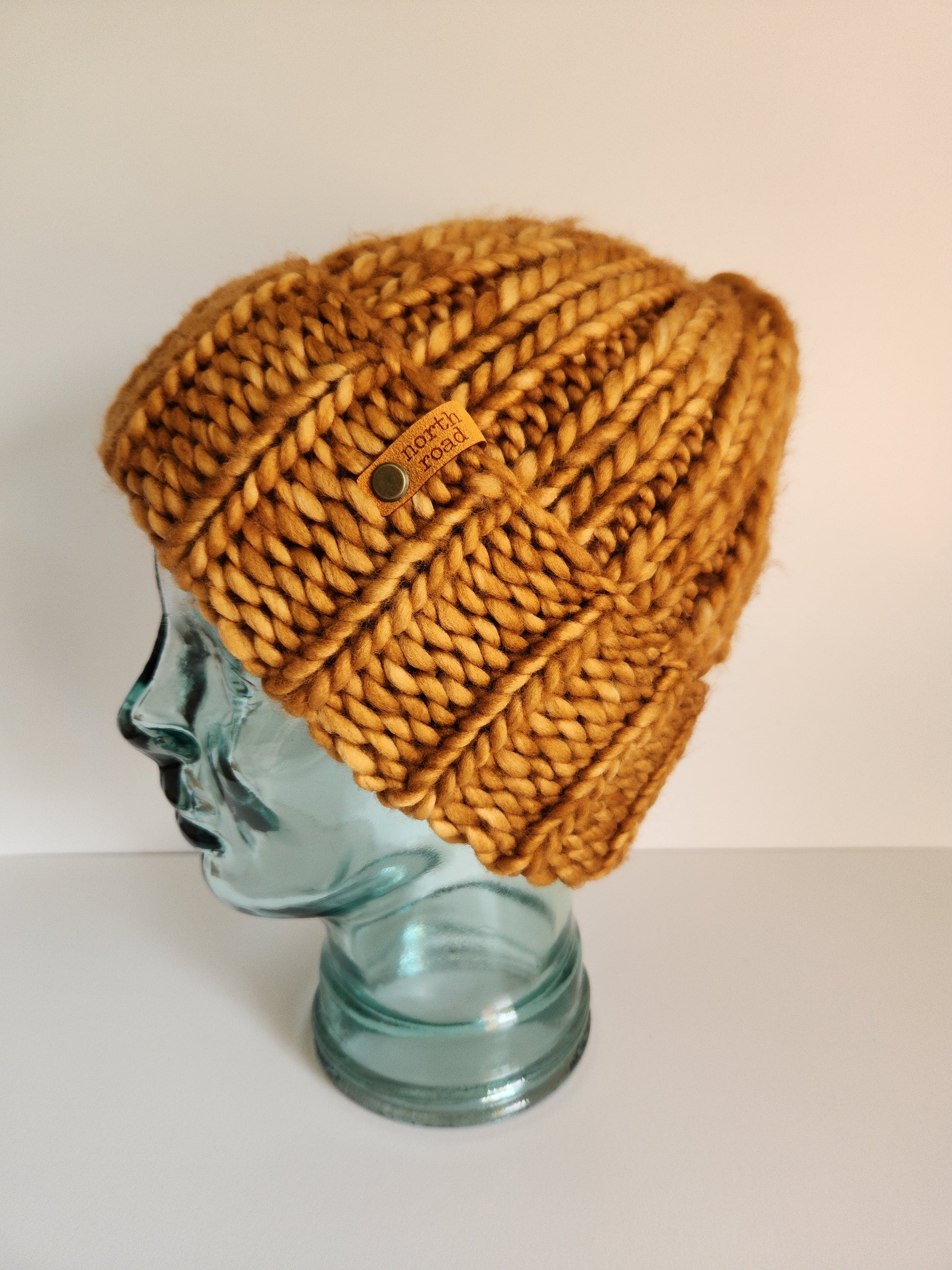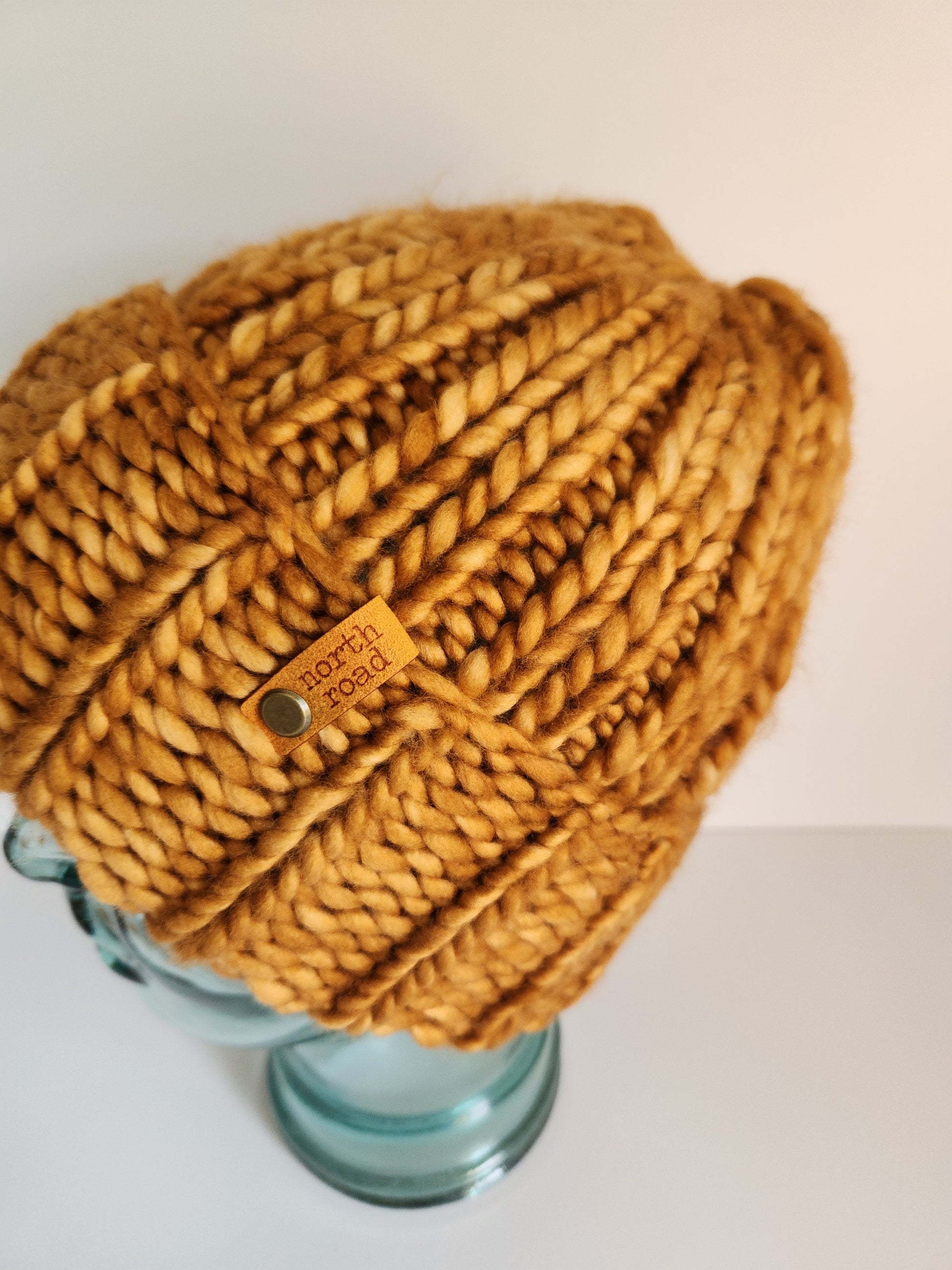 The hat is made from a beautiful merino wool yarn that is sustainably and ethically sourced. Fits most average adult heads. Shown here on a glass mannequin head that measures 22" in circumference.