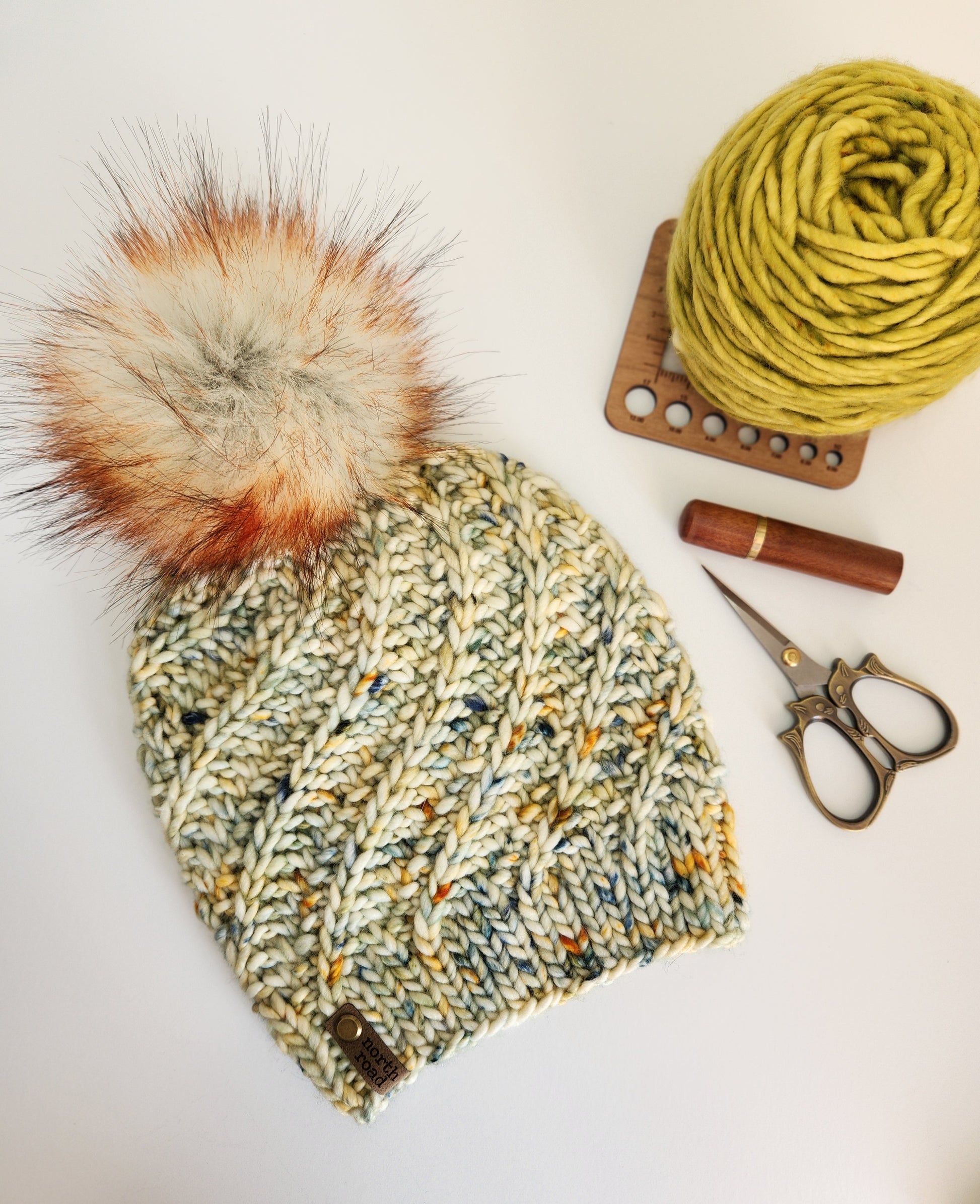 They are made from a beautiful 100% merino wool yarn that is sustainably and ethically sourced, and hand dyed. Fits most average adult heads. Shown here on a glass mannequin head that measures 22" in circumference.