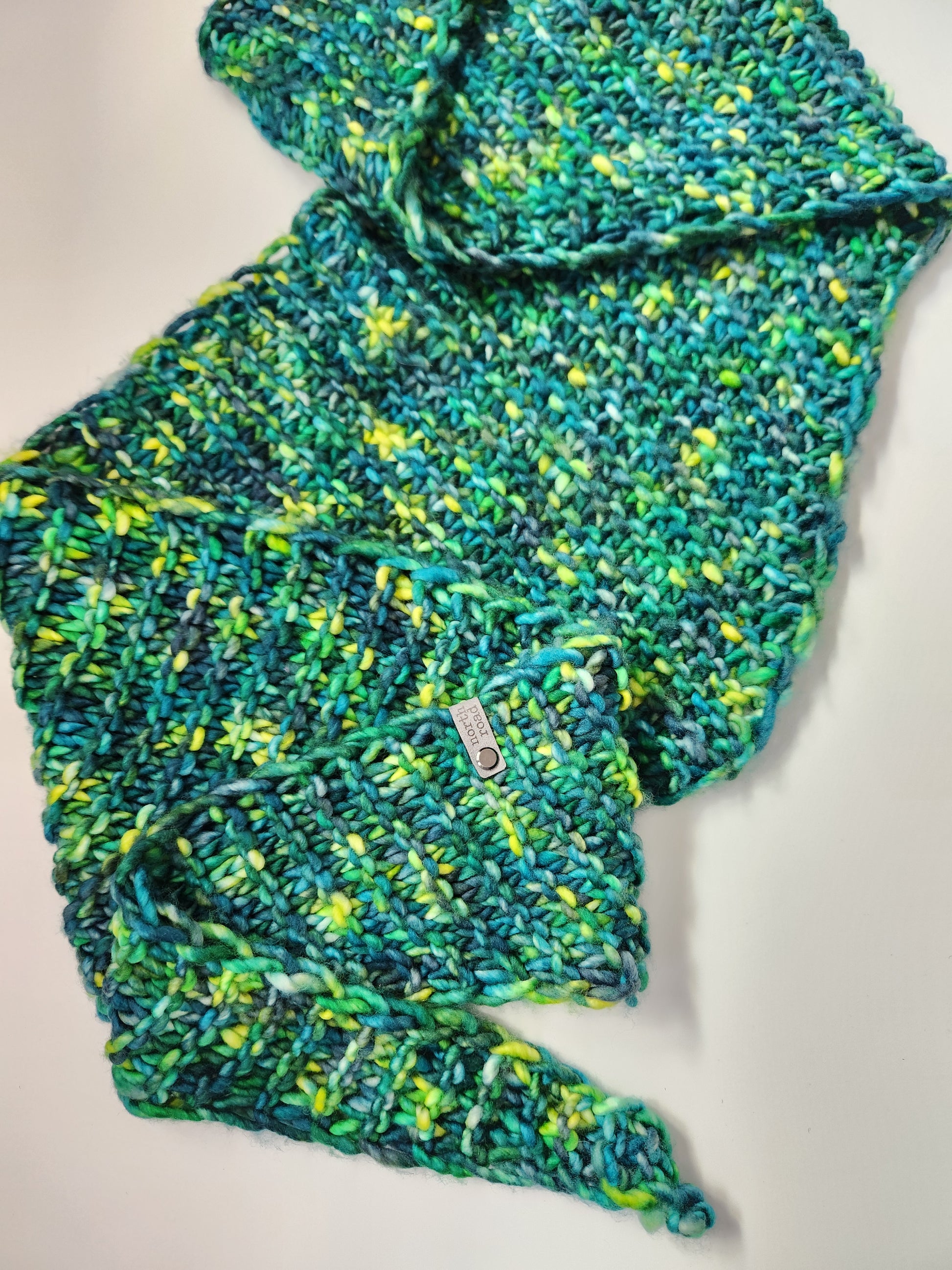 This Shovel Point Scarf was hand knit by me in my northeast Minnesota home.