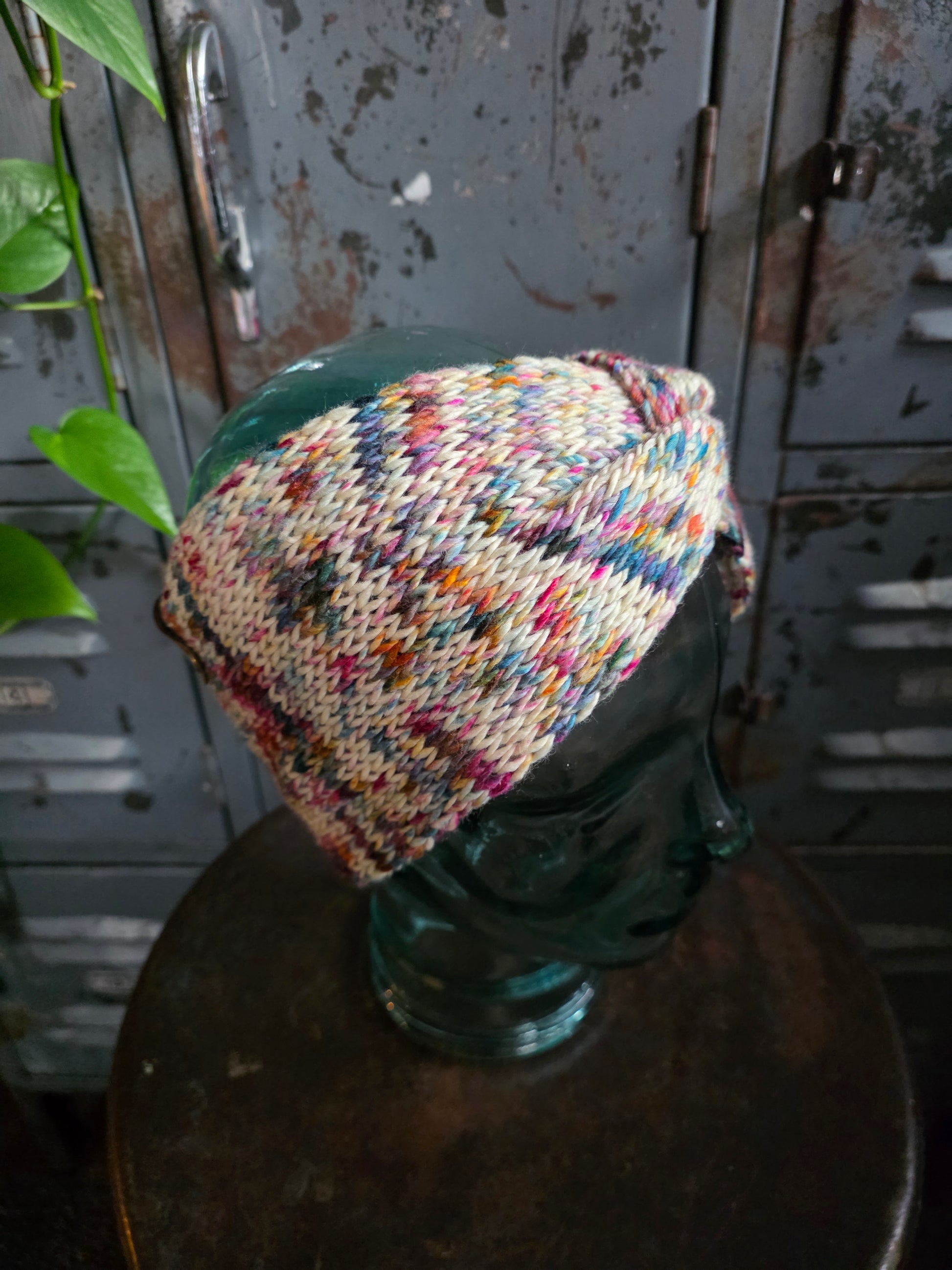 The headband is made from a beautiful 100% merino wool yarn that is sustainably and ethically sourced, and hand dyed. Fits most average adult heads. Shown here on a glass mannequin head that measures 22" in circumference.