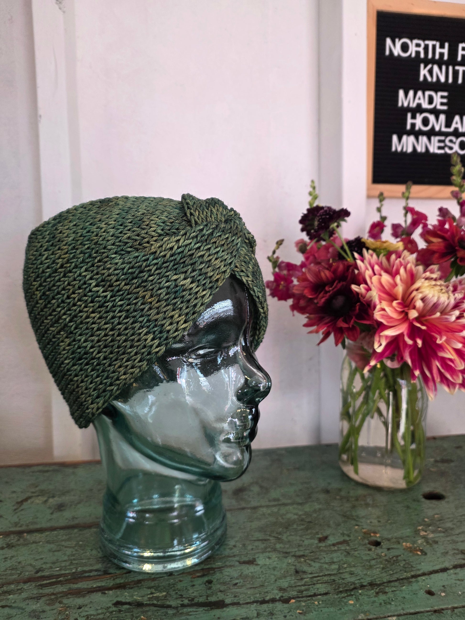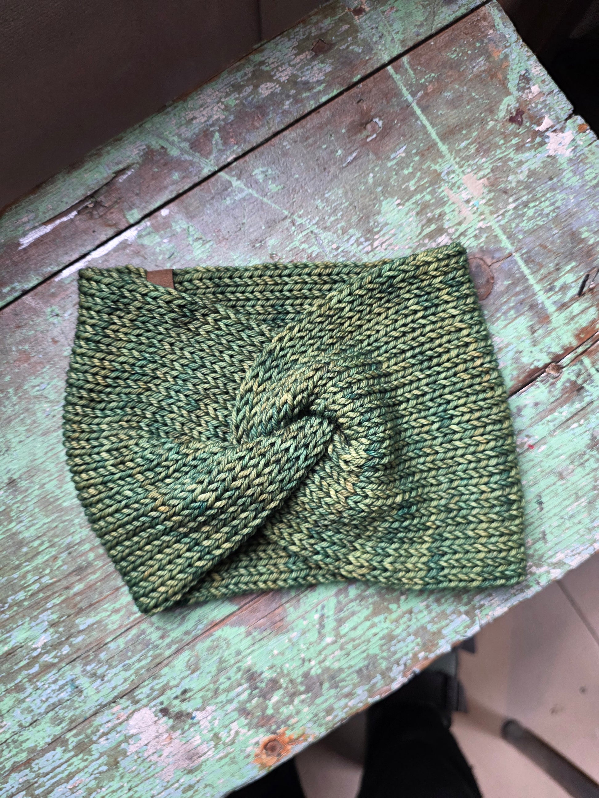 The headband is made from a beautiful 100% merino wool yarn that is sustainably and ethically sourced, and hand dyed. Fits most average adult heads. Shown here on a glass mannequin head that measures 22" in circumference.