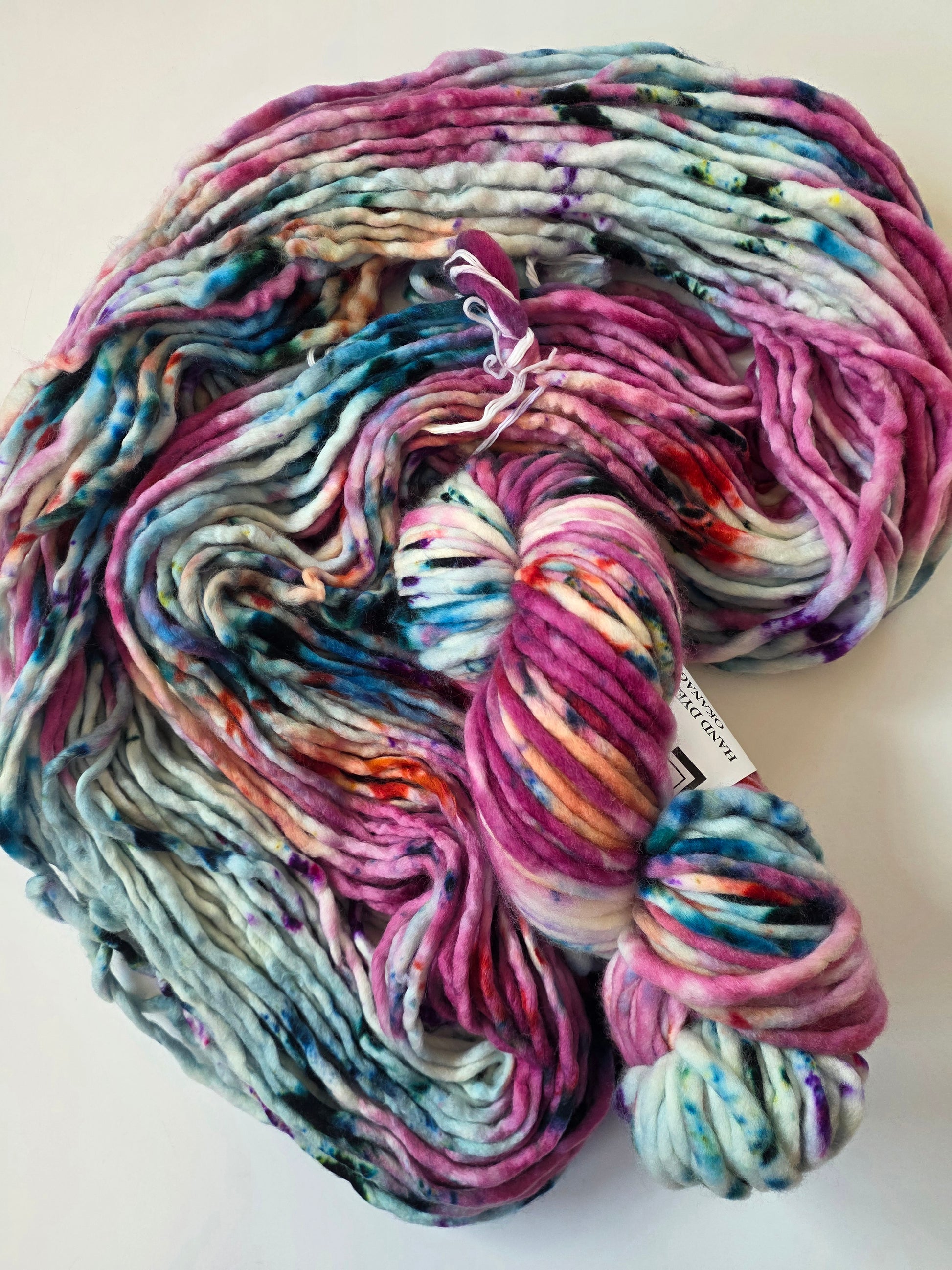 Hand dyed in Vernon, BC, Canada. Beautiful original colorways for one of kind knits in all your favorite Super Bulky patterns.
