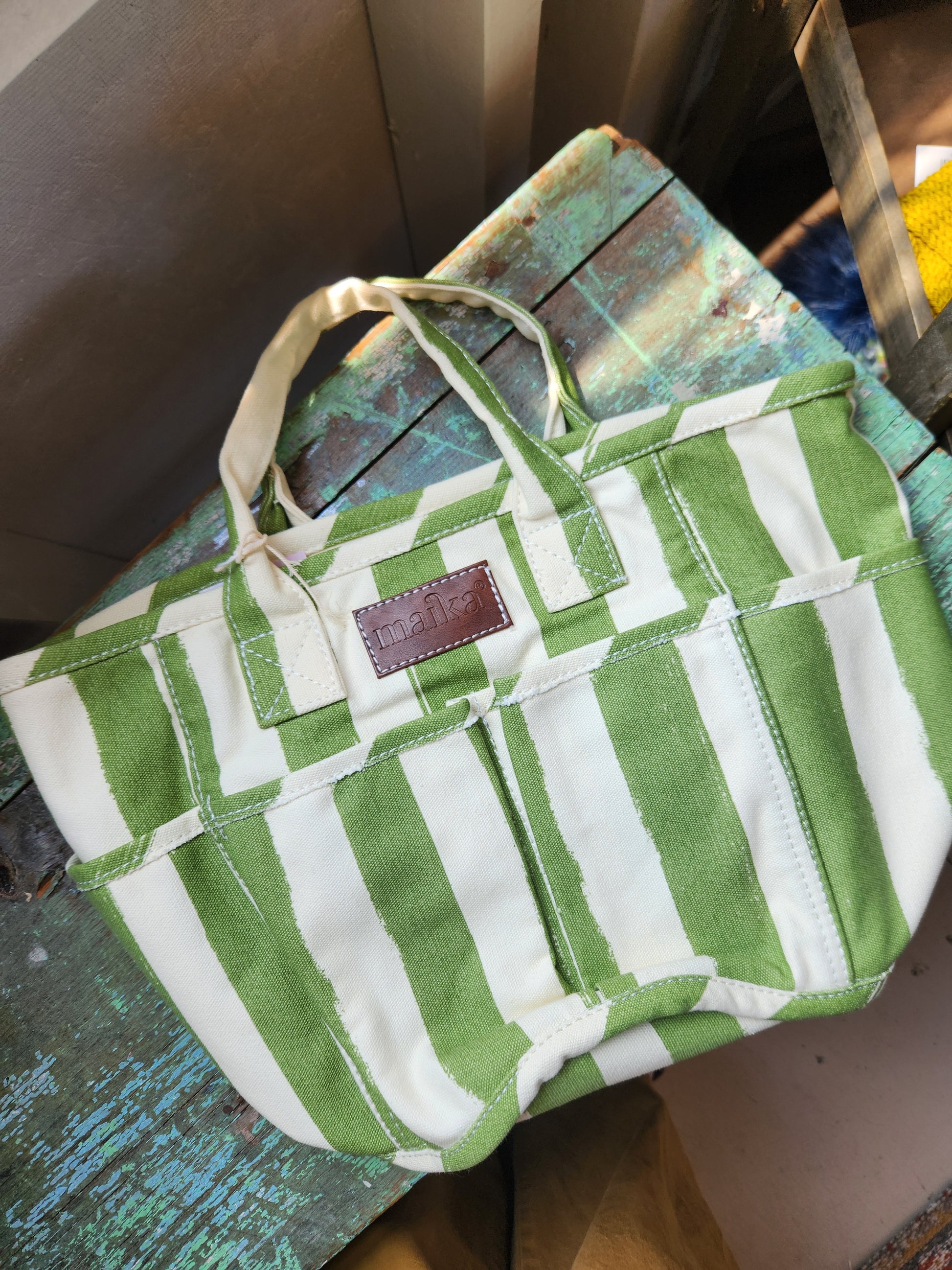 4 outer pockets for easy access. Comes with a drawstring enclosure to secure your project items. Inner pocket with slots for tools and accessories. Handy grommet for threading yarn or hooking a charging cable. Sturdy straps for easy toting.