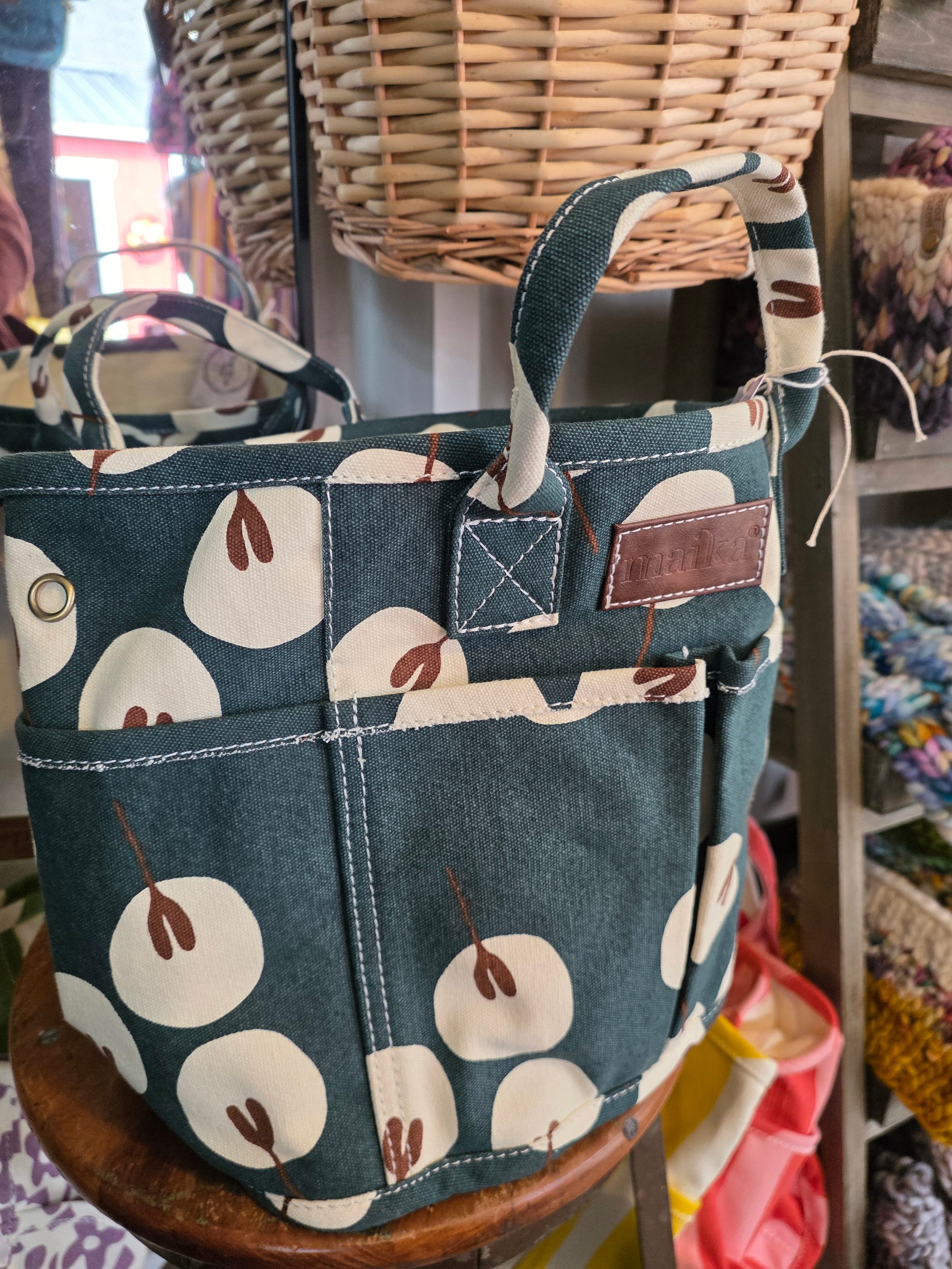 4 outer pockets for easy access. Comes with a drawstring enclosure to secure your project items. Inner pocket with slots for tools and accessories. Handy grommet for threading yarn or hooking a charging cable. Sturdy straps for easy toting.