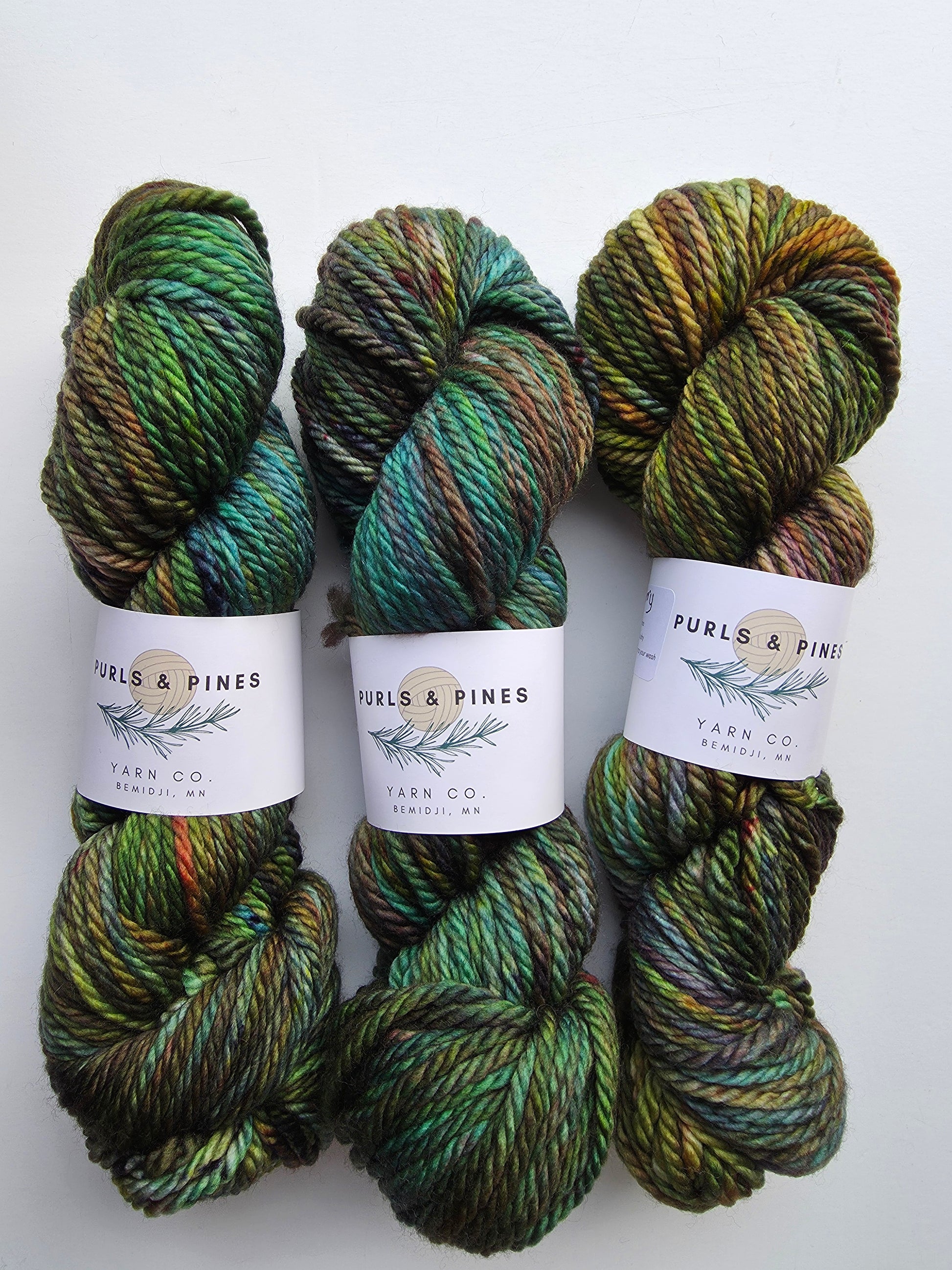 You have been asking me for some Minnesota-dyed yarn, so I am so excited to have Purls and Pine in the shop now! Here is Purls and Pines Chunky Weight Superwash Merino Wool Hand Dyed Yarn.