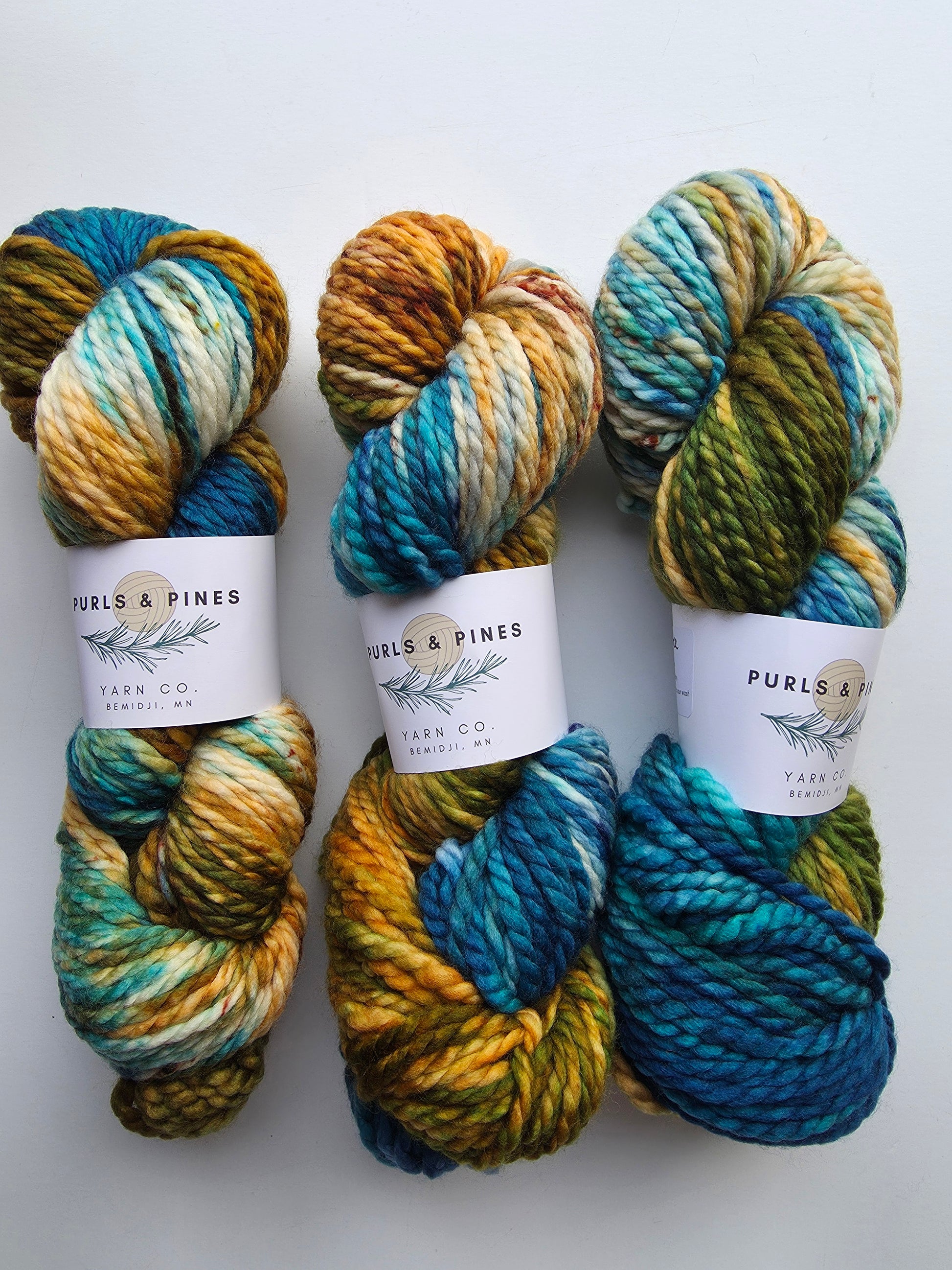 You have been asking me for some Minnesota-dyed yarn, so I am so excited to have Purls and Pine in the shop now! Here is Purls and Pines Chunky Weight Superwash Merino Wool Hand Dyed Yarn.