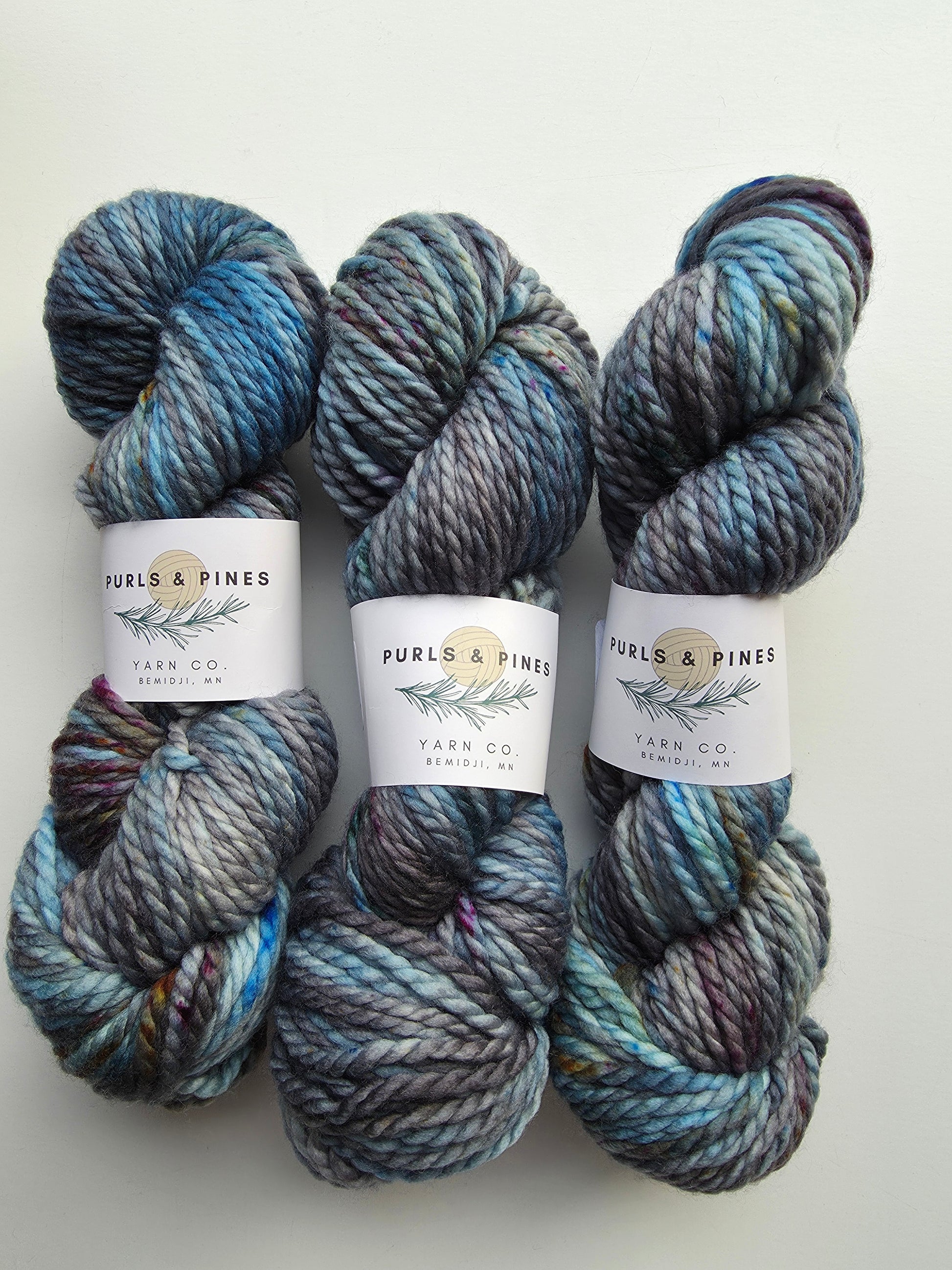You have been asking me for some Minnesota-dyed yarn, so I am so excited to have Purls and Pine in the shop now! Here is Purls and Pines Chunky Weight Superwash Merino Wool Hand Dyed Yarn.