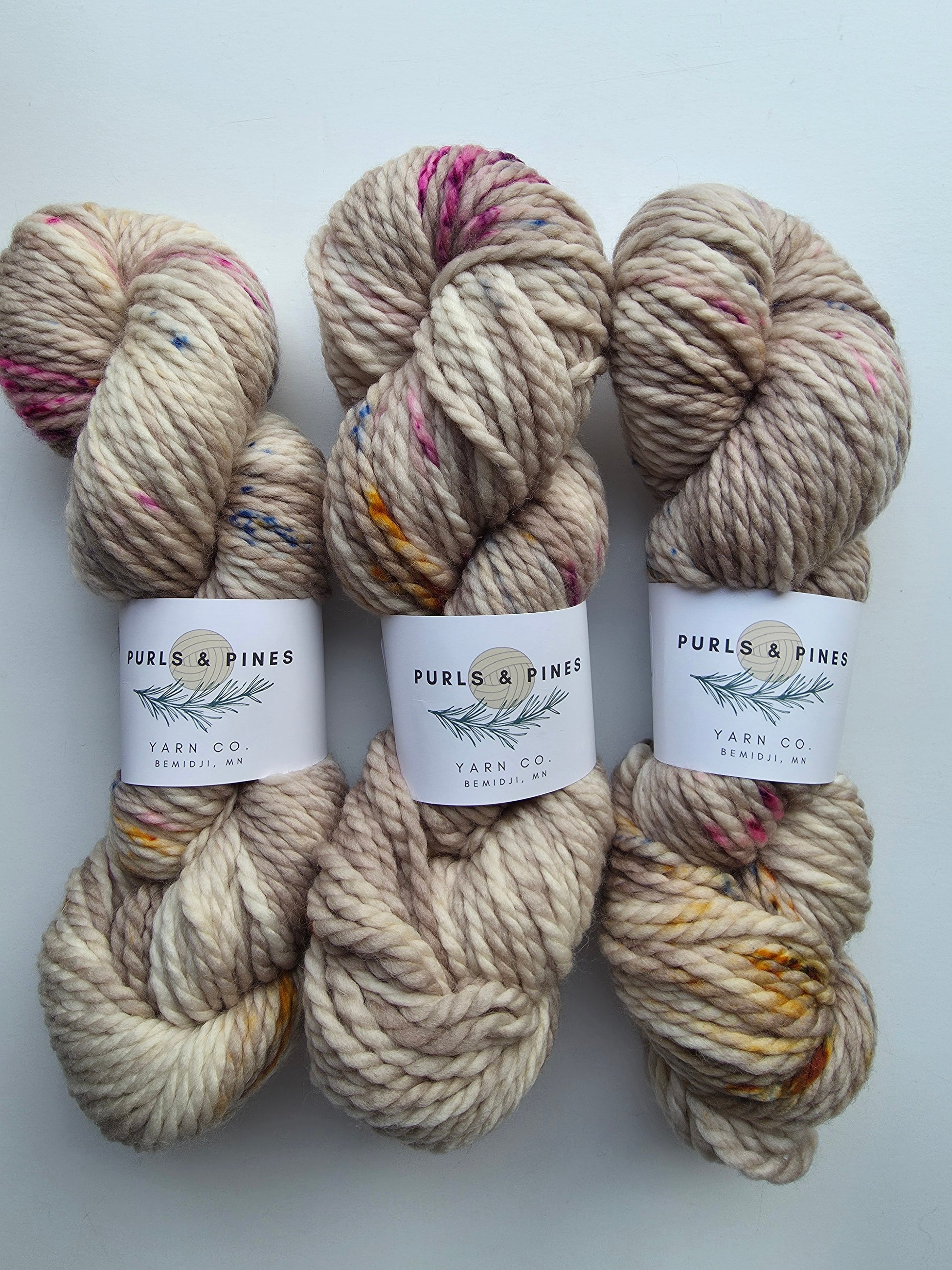 You have been asking me for some Minnesota-dyed yarn, so I am so excited to have Purls and Pine in the shop now! Here is Purls and Pines Chunky Weight Superwash Merino Wool Hand Dyed Yarn.