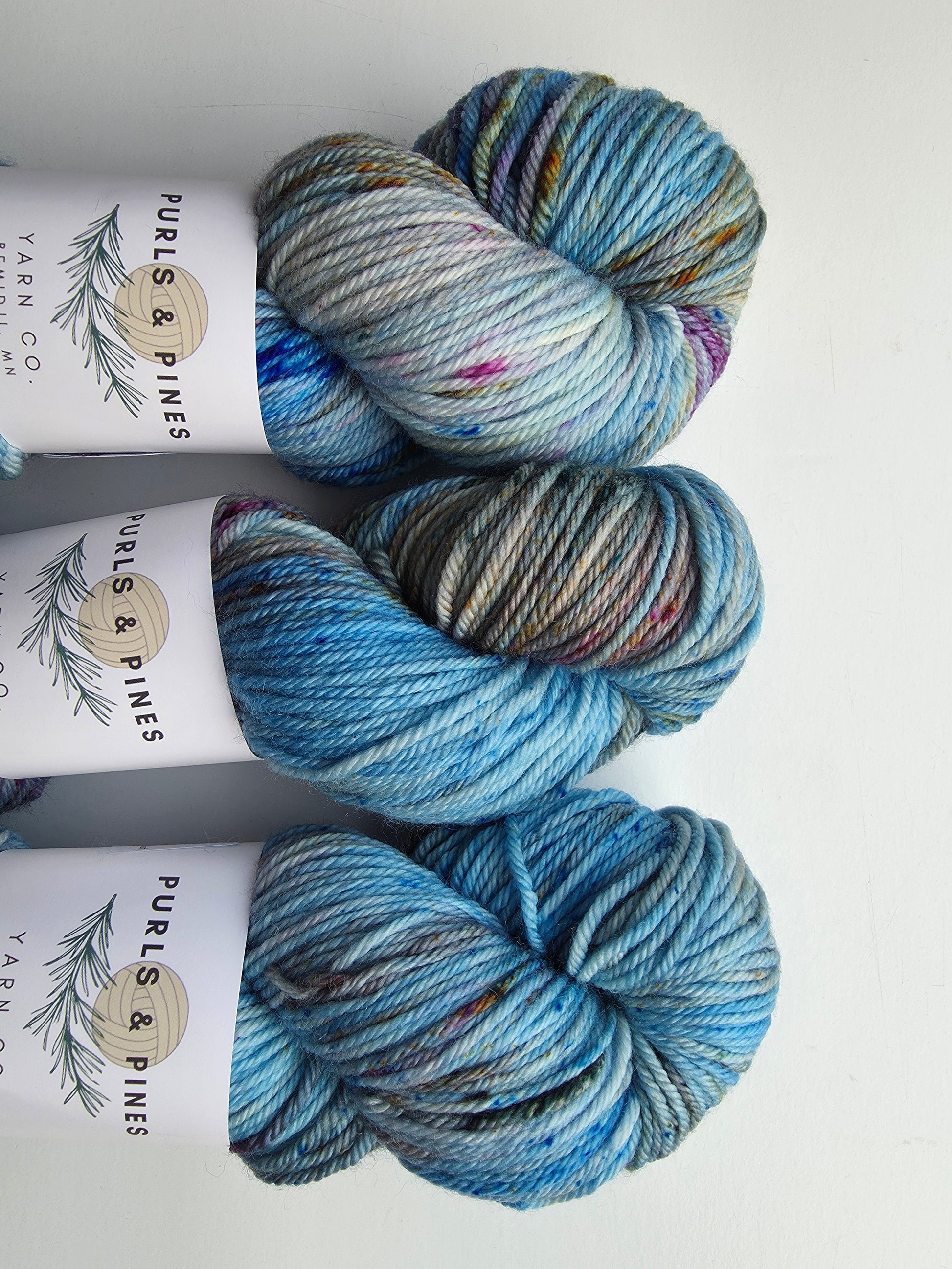 You have been asking me for some Minnesota-dyed yarn, so I am so excited to have Purls and Pine in the shop now! Here is Purls and Pines Worsted Weight Super Wash Merino Wool hand dyed Yarn.
