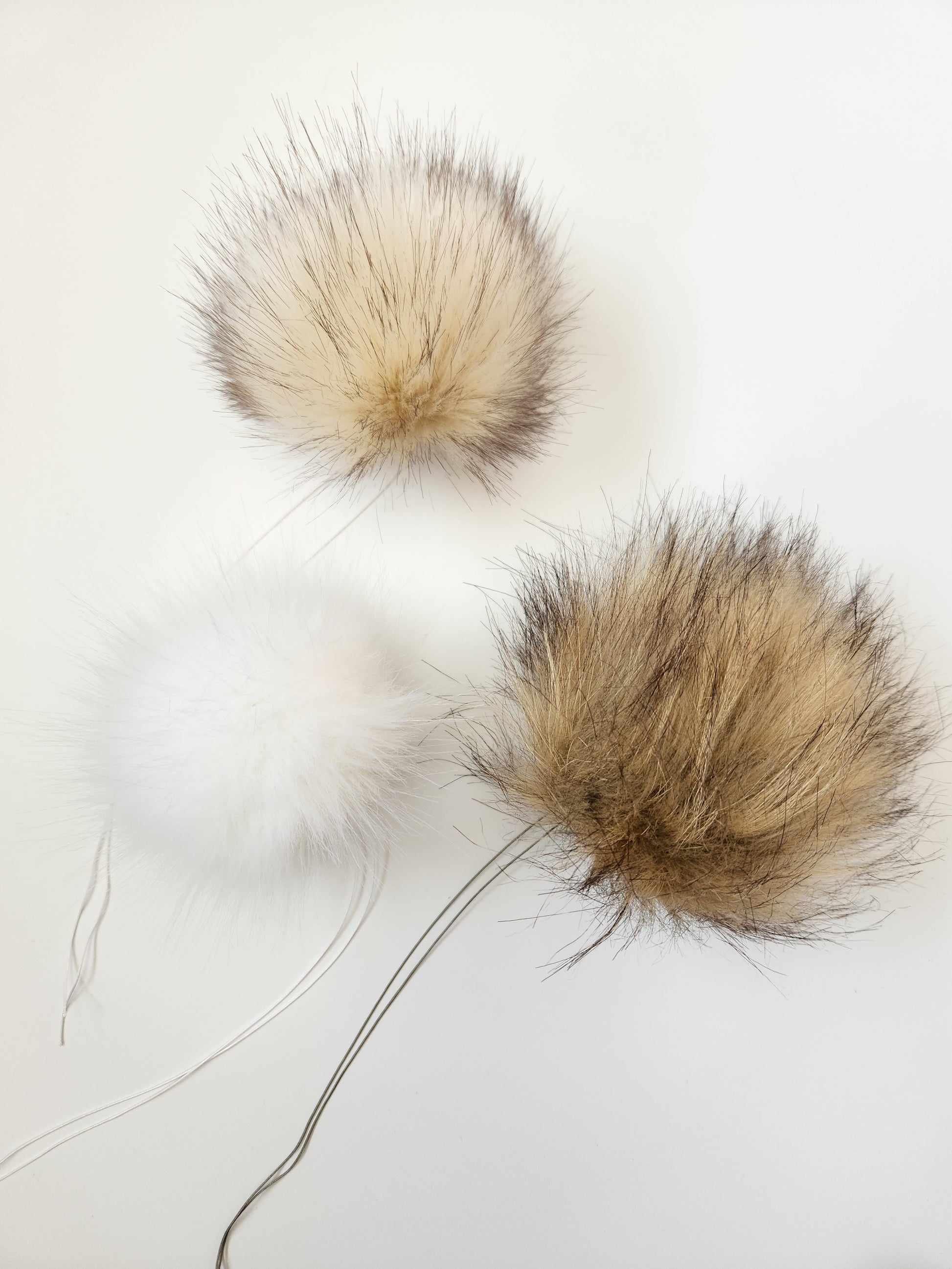 Set of 3 Handmade Faux Fur Pom Poms; Ice, Vanilla, Sand
